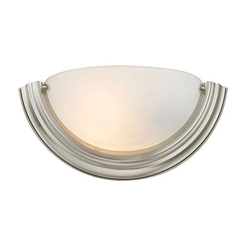 1 light wall sconce in brushed nickel has item collection from wall sconces. The item type is of wall sconce. The material type is metal, glass. Item finish: brushed nickel. The country of origin is china.